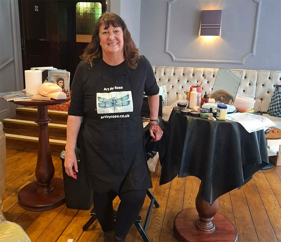 With over 20 years of experience in theatrical media makeup and special effects, Rose led an SFX makeup workshop for performing arts students at the Palace Theatre in Manchester on 9th April 2026. During the session, she demonstrated a range of techniques for creating realistic wounds, scars, and bruises, using materials such as fake blood, latex, and modelling wax.